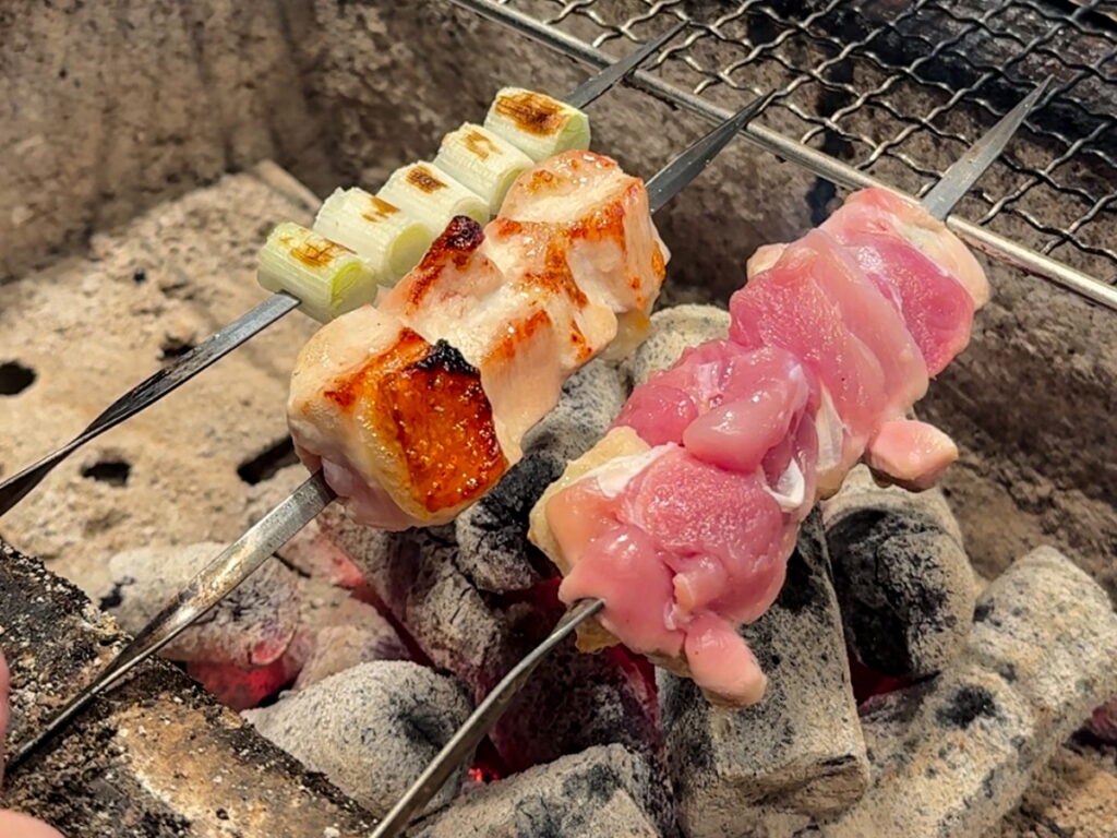 この鹿野地鶏を、一度炭火であぶって香ばしく!