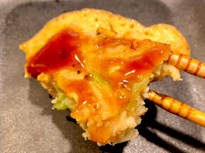 なんでも、このお好み焼き粉の中には山芋が入っているらしい。だからこんなにしっとりした口当たりになってるんだな。
