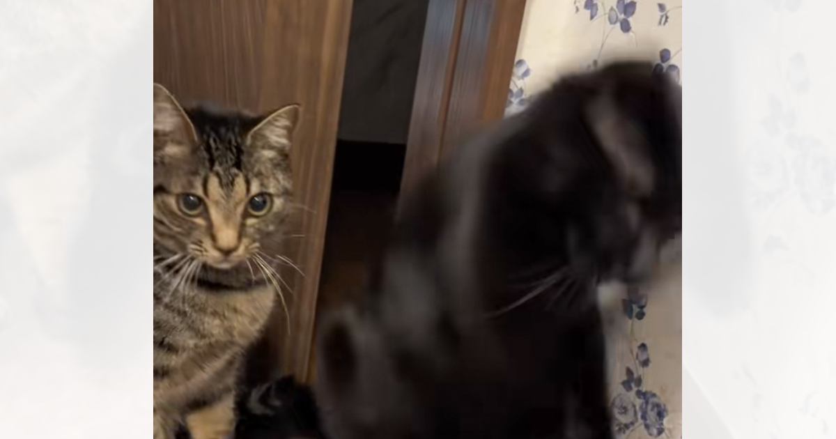 わずか5秒の間で、あまりにも情報量の多い光景を披露してくれた2人。黒猫ちゃんはそのまま部屋を去っていったそうですが、キジトラちゃんは訳が分からないといった様子で、飼い主さんを見つめてきたといいます。急に黒猫ちゃんが暴れ出して、キジトラちゃんも驚いたことでしょう。