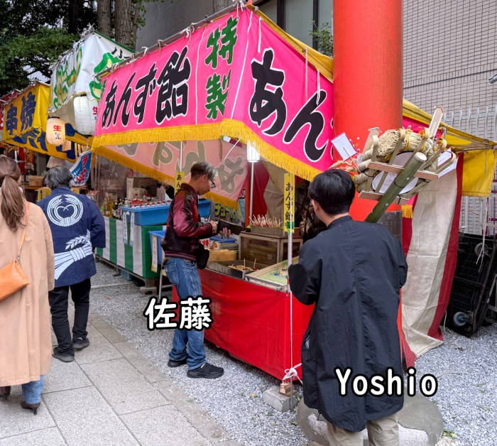 毎年熊手を買いに行くのだが、この日程調整が意外と難しい。出社日とメンバーのスケジュールの調整した結果、今年は一の酉の前夜祭の昼に、私と羽鳥とYoshioの3人で行くことになった。