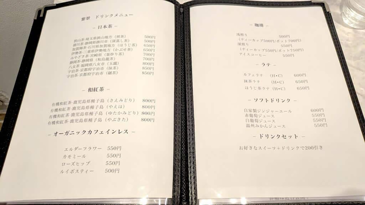 ドリンクは日本茶、和紅茶が中心。コーヒーのポットサービスがあるのも珍しいかも。