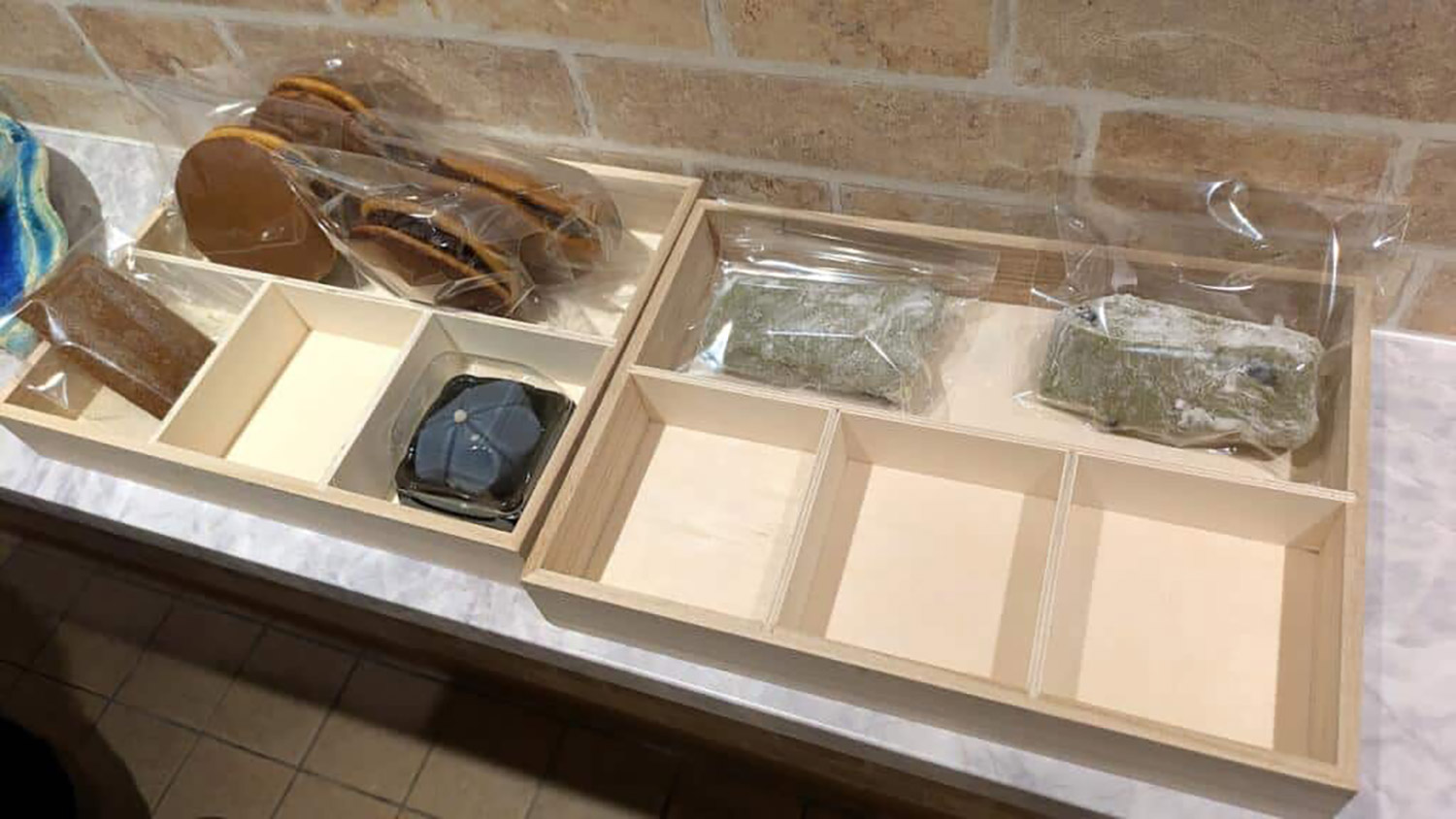 どら焼き、フィナンシェ、練り切りなどの和菓子は、店内飲食はもちろんテイクアウトも可能。