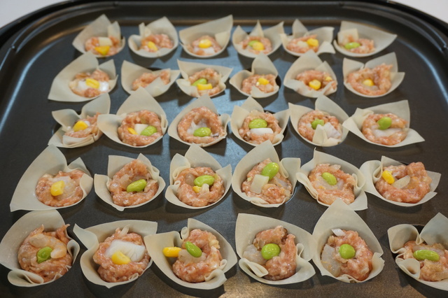 枝豆やコーンを使った焼きシュウマイ