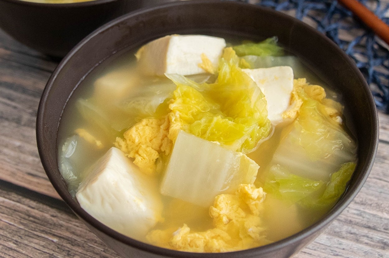 【白菜と豆腐で試してみて】「体があったまる〜」「寒い日はこういうのが食べたい!」白菜と豆腐のふわふわ卵スープレシピ