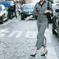 脚長効果を狙うなら、トップスは短め丈かウエストインがおすすめ。