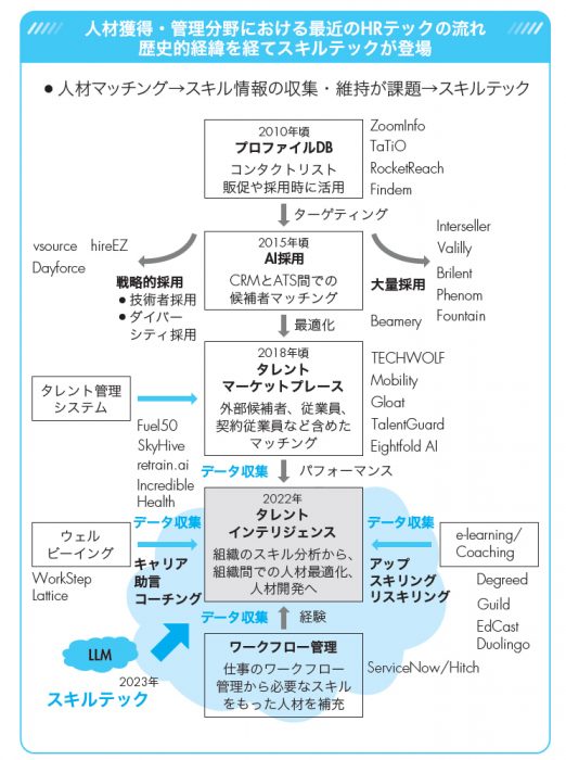 HRテックのベンダーの多くは、スキルが入っていそうなデータベースを持っている会社を買収しています。買収したデータベースの中のスキルのデータを活用できるようにしているところです。