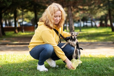 また、おもちゃの破片やビニールなどの消化できないものが混じっている場合は、誤飲が原因です。飼い主が気づかないうちに犬が何かを口にしていることが多いため、ウンチに異物が混ざっていないか常に確認するようにしてください。
