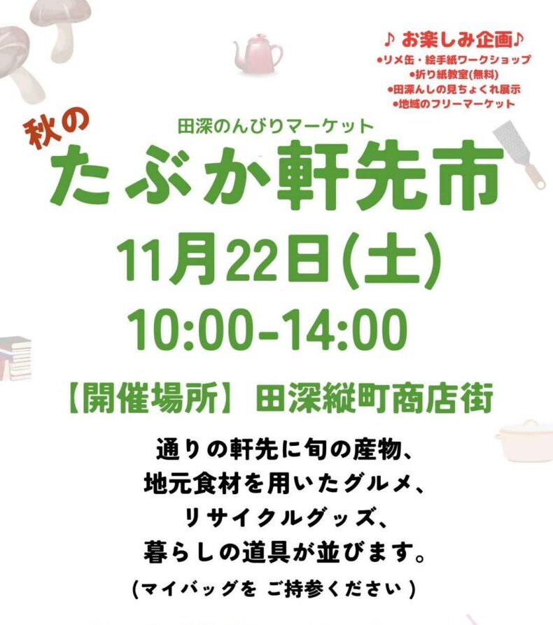 田深のんびりマーケット『秋の たぶか軒先市』が開催されます