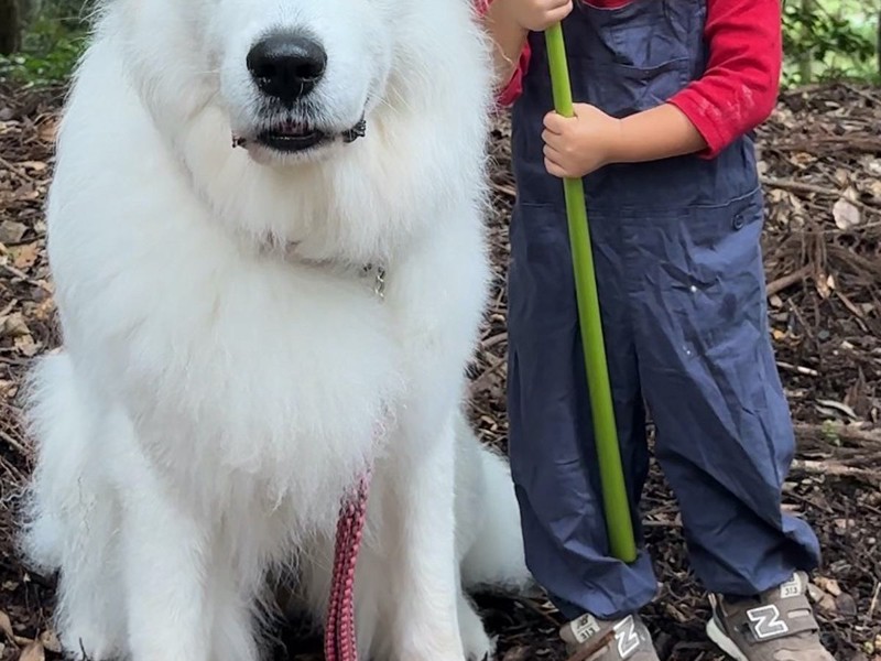山奥暮らしを満喫されているシュシュちゃん、LONOちゃんにはトイプードル「ビビ」ちゃん、オールドイングリッシュシープドッグ「むぅむぅ」ちゃん、グレートピレニーズ「ぼんぼん」ちゃんという家族の存在も。