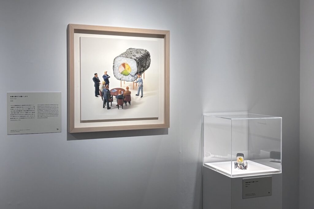 長い会議にうんざりしている人も納得!?「会議は巻きでお願いします」 巻き寿司の具材を会議中のグラフに、メガネを自転車に。見慣れたはずのものが、意外な見立てになっているおもしろさ。思いがけない表現でも納得してしまうから不思議です。会場では約160点にも及ぶ作品を、アイデアの元と、形にする方法を紹介しながら展示。ミニチュアの世界に飛び込めるフォトスポットなど、眺めるだけでなく楽しく参加できる展示会となっています。