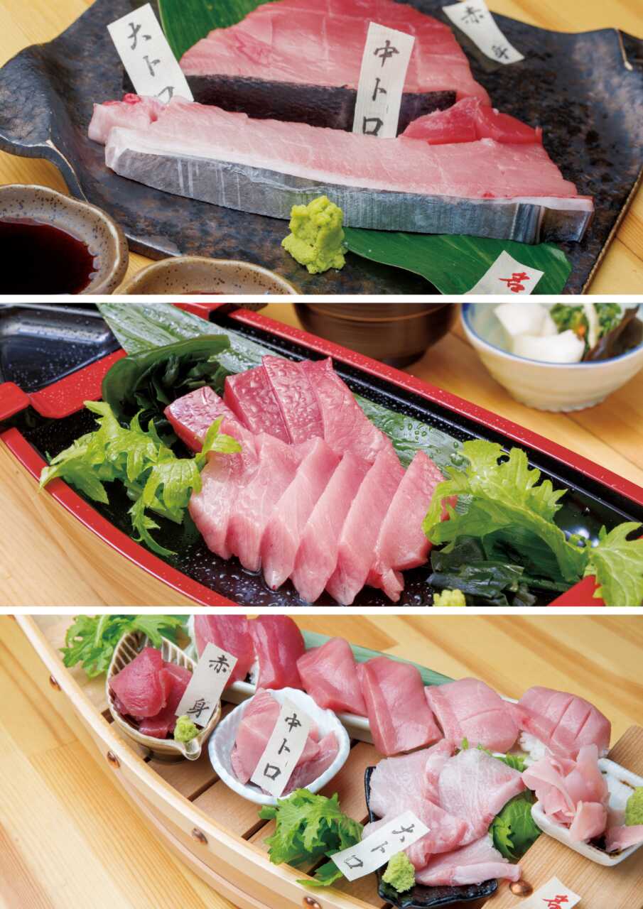 ランチも多彩で、海鮮丼や本マグロ丼はもちろん、お造りや天ぷらなどがセットになった「お造り定食」や「マグロレアカツ定食」、「和そば鉄火巻定食」などがそろいます。冬には天然の九絵(クエ)が味わえることもあって、県外からの利用者も多いそう。