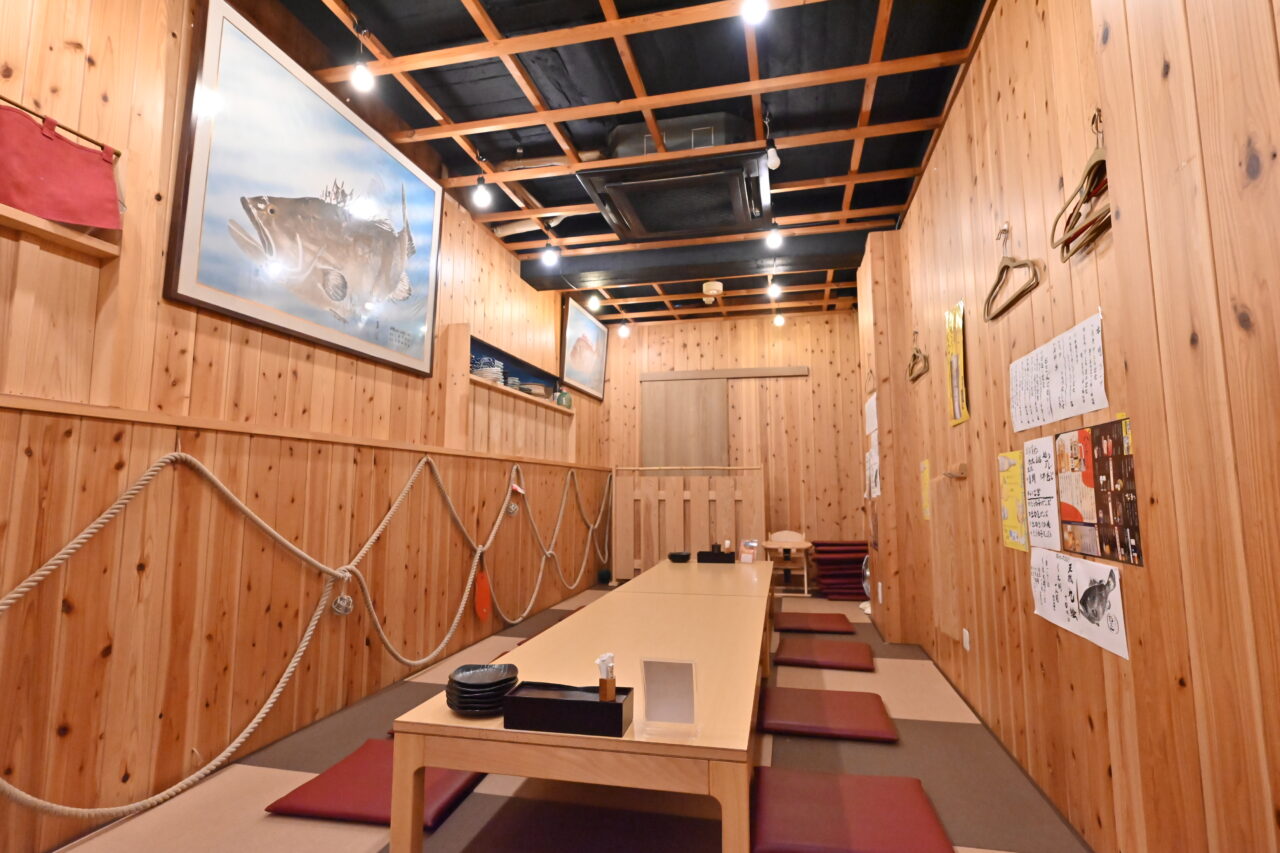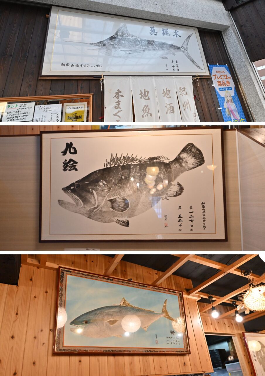 店内には巨大な魚拓が飾られており、魚への愛着が感じられます。