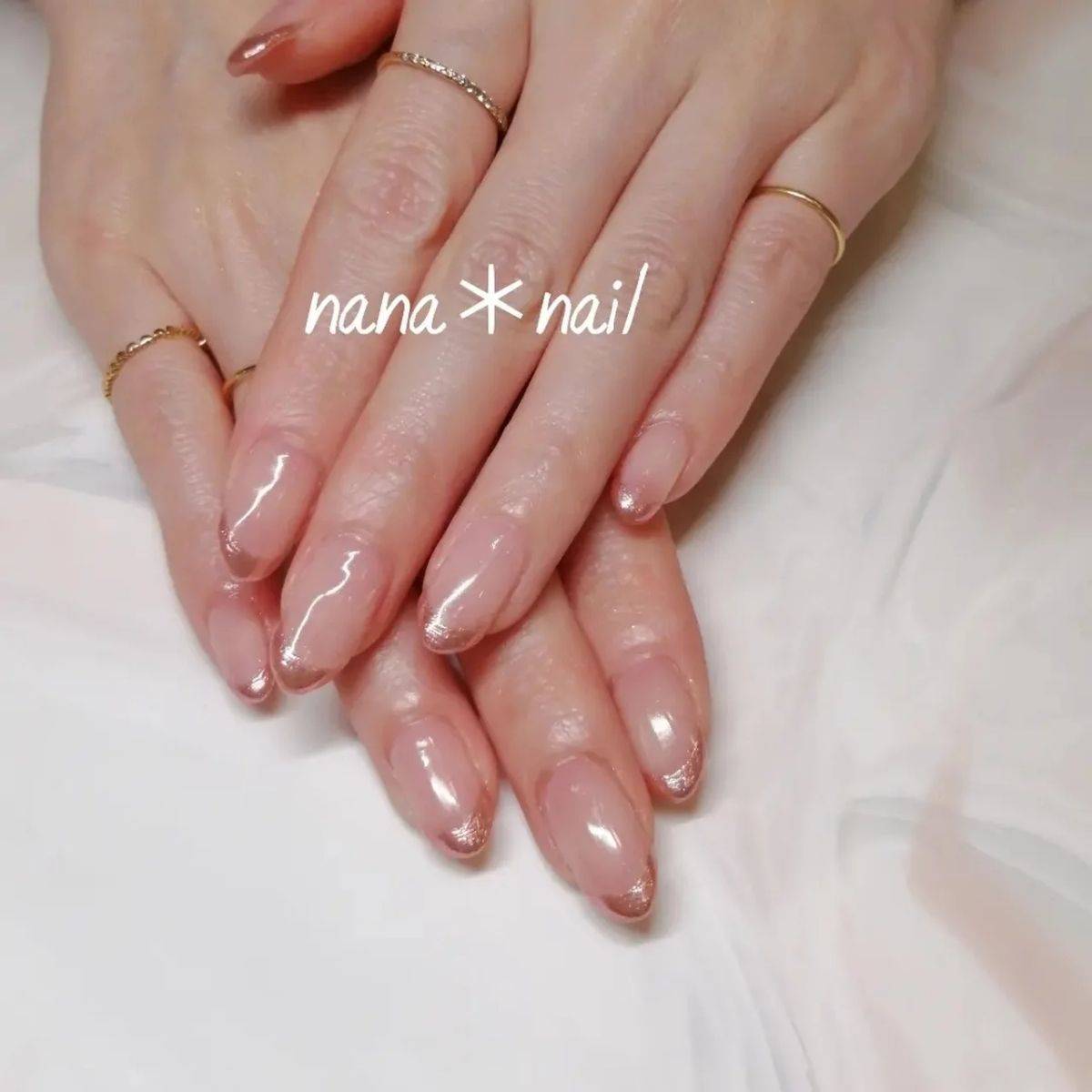 大人女子には、柔らかい手元を作るピンクベージュ系のミラーネイルがおすすめです。