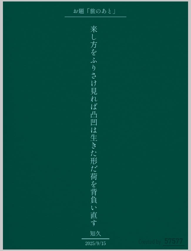 来し方をふりさけ見れば凸凹は生きた形だ荷を背負い直す (投稿者/知久さん)