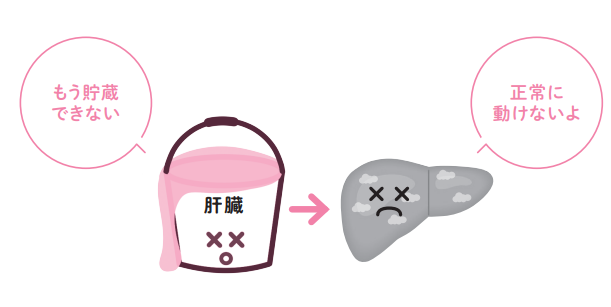 肝細胞が炎症を起こして壊れ、中性脂肪が血液中に流れ出てしまい体脂肪として蓄えられて肥満に。