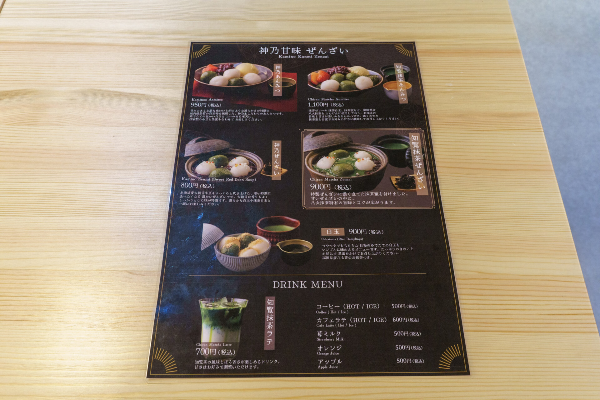 メニューには、知覧抹茶を使用した本格的な抹茶スイーツが並びます。