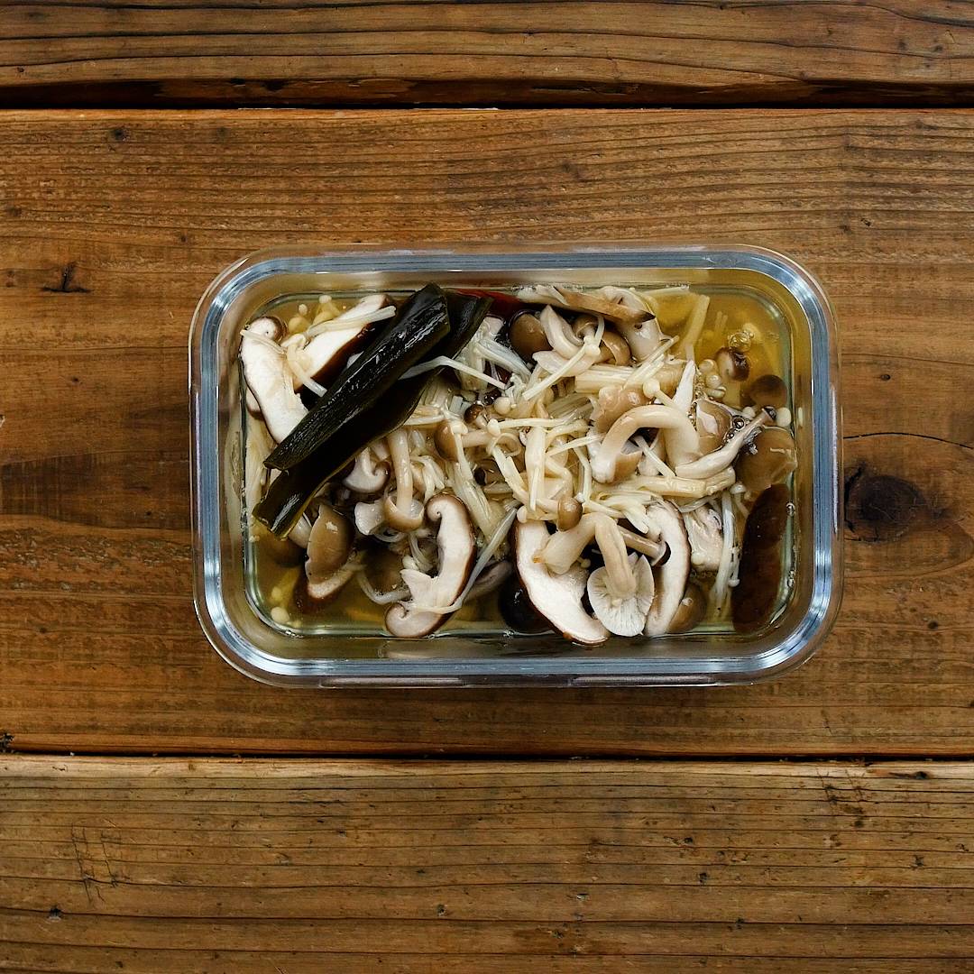 3: きのこ類がしんなりとしたら火からおろし、清潔な保存容器に移して粗熱を取ったら完成です。