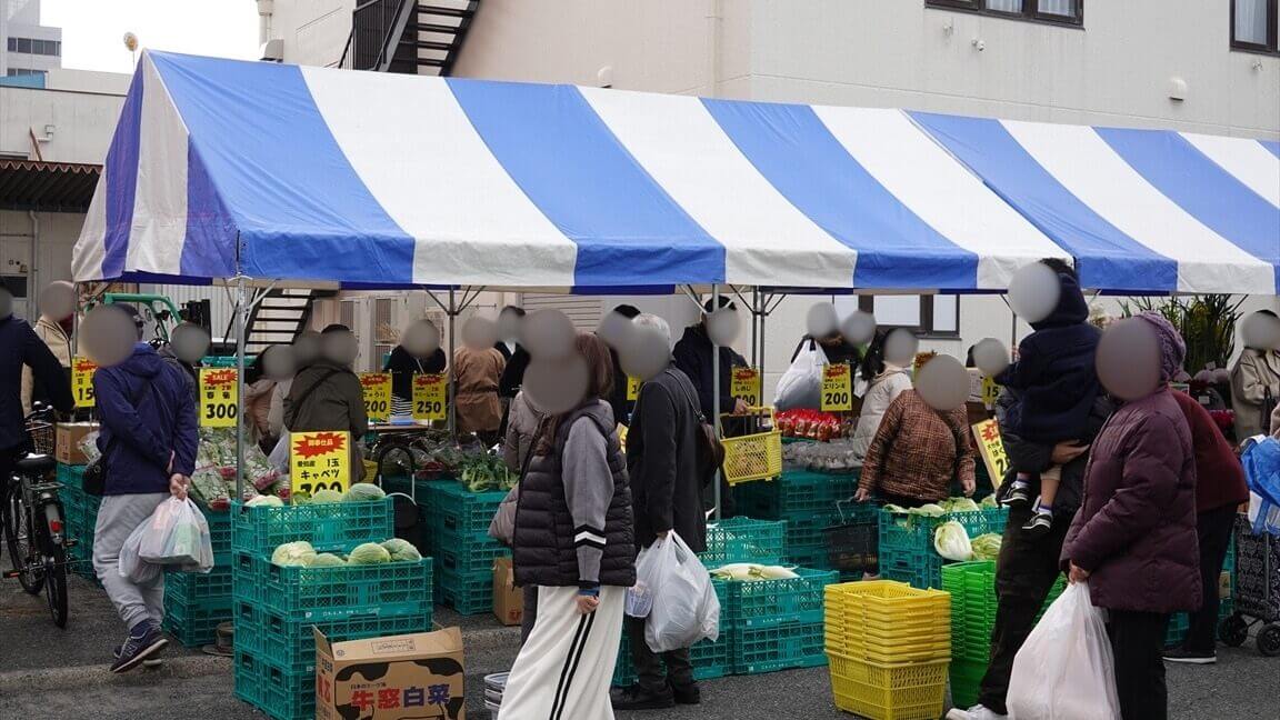 衣類や生活雑貨、野菜や果物から資材までが並ぶ「ほりだしもん市」では、活気ある雰囲気の中で買い物を楽しむことができます。