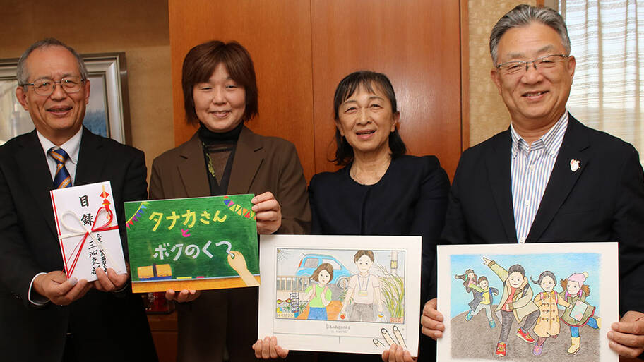 市内に住む己書師範・坂口真美さんと門下の師範8人、更にそれぞれが指導する同市の教室生らの作品計256点が並ぶ。花や果物、季節の行事など題材はさまざまで、はがきや色紙、木の板、扇子、掛け軸など、多彩な素材に描かれた作品がある。展示時間は営業時間と同じ午前9時から午後3時まで。