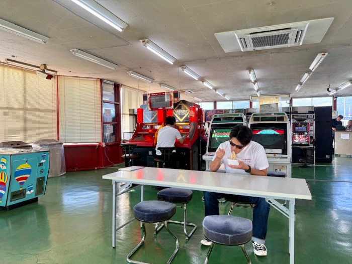 看板どおり「昭和のゲーセン」と「昭和の自販機食堂」を組み合わせた空間だった。完全に北関東のテーマパークではないか。