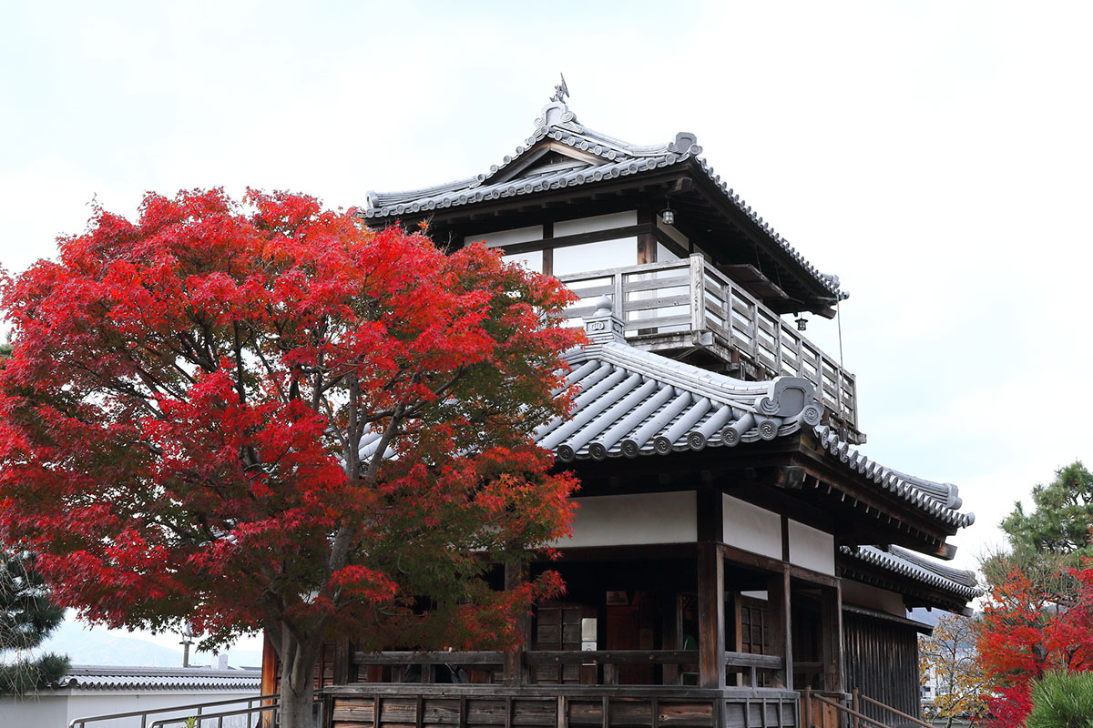 そんな「池田城跡公園」には復元された枯山水や井戸、礎石などもあり、敷地内はさまざまな見どころがあります。散策路もあるため、あちこち観賞しながら散歩するのがおすすめです。そして、秋には紅葉が園内のあちこちで色づきます。やぐら風展望休憩舎に登ると、見晴らしのいい景色とともに鮮やかな紅葉を楽しむことができますよ。