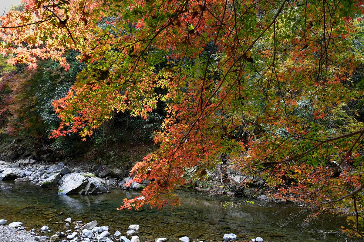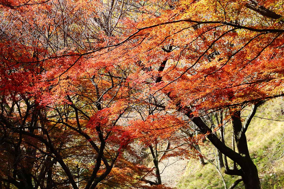 摂津峡の渓谷に沿って歩く渓谷コース、もみじ谷やくぬぎ谷など豊かな自然を通る人気の中腹自然林コースなど、コースの長さや見たい景色にあわせて選べますよ。秋になるとそんなハイキングコースのいたるところで紅葉を楽しめるので、お弁当を持って散策してみてはいかがでしょうか。