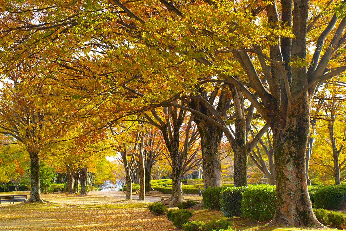 「万博記念公園」(大阪府吹田市千里万博公園)では、広大な敷地のさまざまな場所で紅葉を見ることができます。公園内の西大路ではプラタナスの並木道が続き、11月上旬~下旬にかけて黄金色になる様子はまるでヨーロッパの街並みのよう。日本庭園では鮮やかに色づくカエデが風情ある庭園とマッチして、美しい景色を見せてくれます。広大な園内を散策しながら、多様な種類の紅葉を楽しむことができますよ。