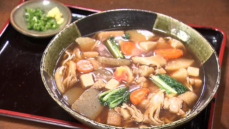 具材は、静岡県産のサトイモ・ニンジン・ダイコン・ゴボウなど根菜類が中心。とろみをつけて温かさを閉じ込めた寒い時期限定のそばです。