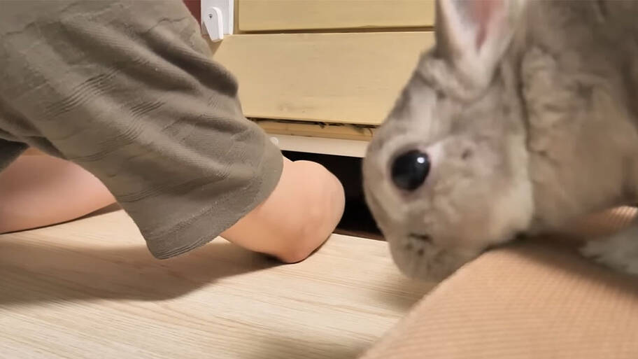 ジャンちゃんは何度もくねくねと体をひねって、どうにかして起き上がろうと必死にがんばっていたそうです。その甲斐あって、腕の力を使いながら大きく体をよじった拍子に、見事寝返りを打つことに成功し、うまく四つん這いになることができたとのことでした。