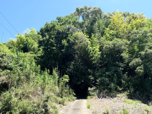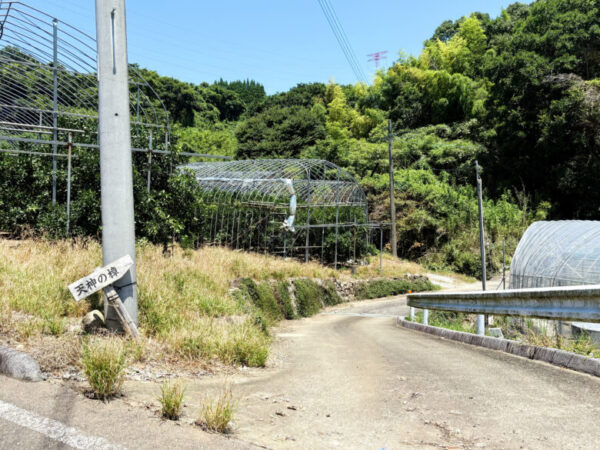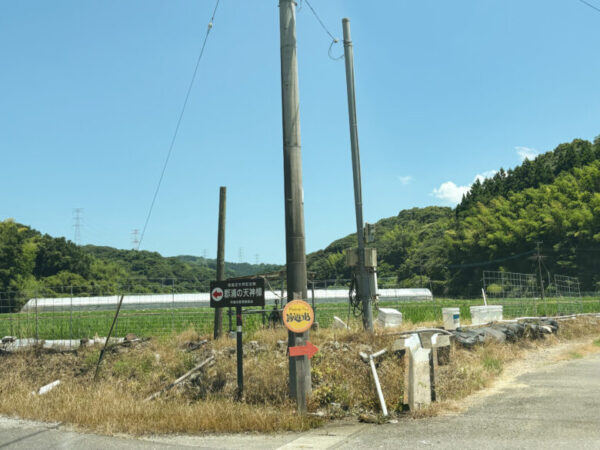 しばらく進んでこの看板を見つけたら到着です。 近隣は畑。そして数軒の民家がある静かな場所。一見、ここにそんなに有名な巨木があるの!?と思うかもしれません。 初めての方はこの看板がないとおそらく辿り着くことはできないでしょう。 この看板の先へは徒歩で向かいます。