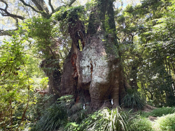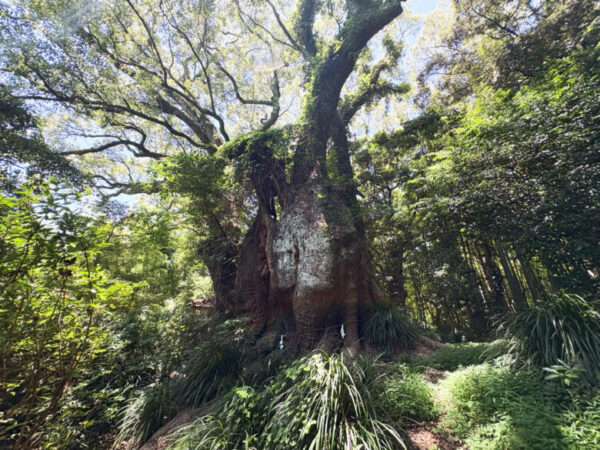目の前に、圧巻の巨木が登場します。 樹齢1,000年以上で樹高約23メートル、根周り約30メートル、枝張り約20メートルの巨木は熊本県でも最大級なんだそう。