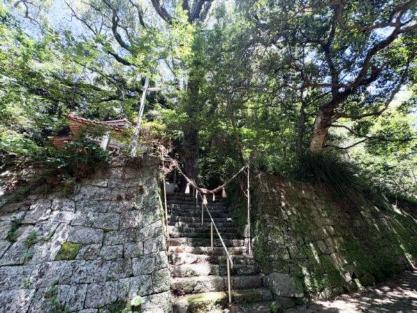 「郡浦の天神樟を近くで見たい!」そんな時には石段を挟んだ反対側へ。