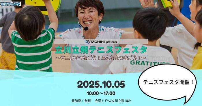10月5日(日)にドーム立川立飛ほか複数会場で「立川立飛テニスフェスタ」が開催されるようです。