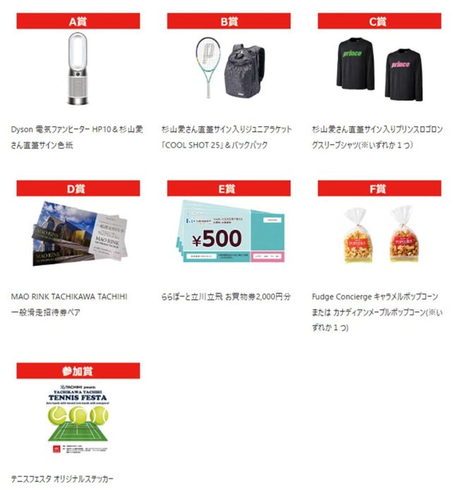 謎解きに正解すると、杉山愛さんサイン入りテニスグッズやららぽーと立川立飛お買い物券などが当たる抽選会に参加できます。