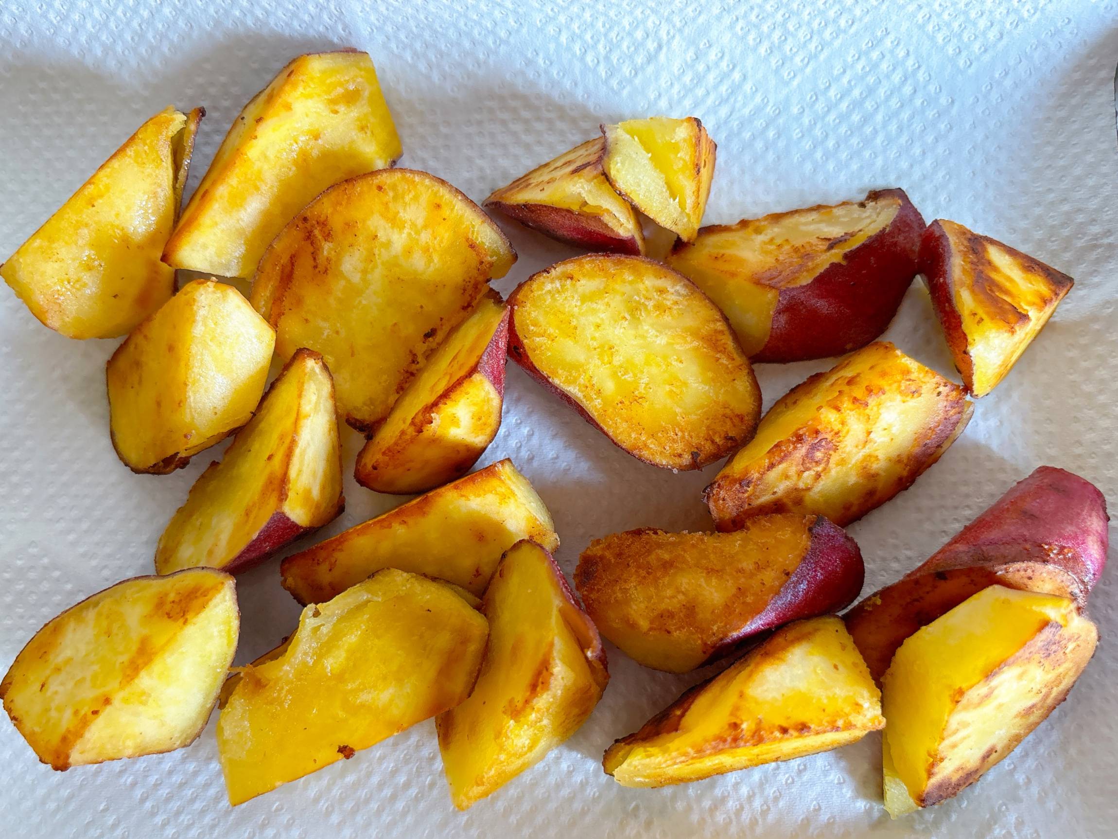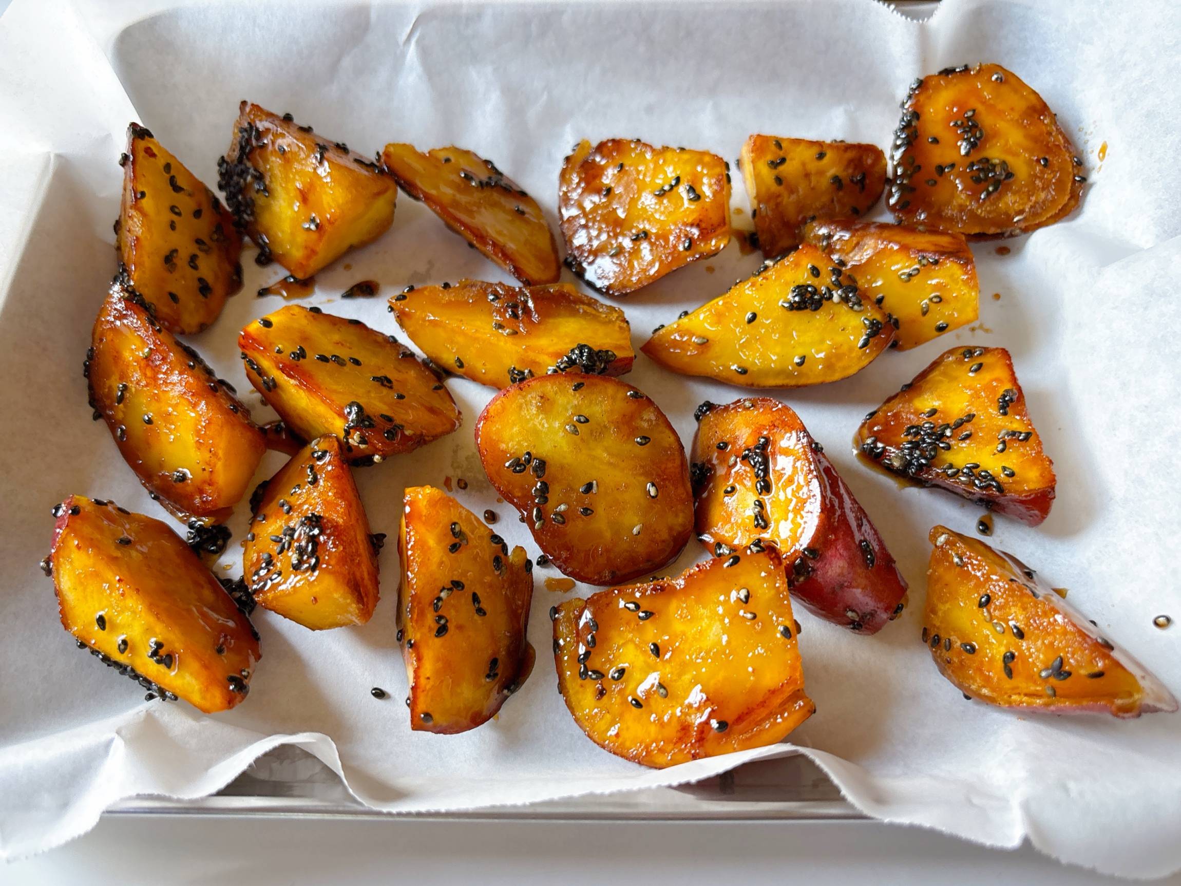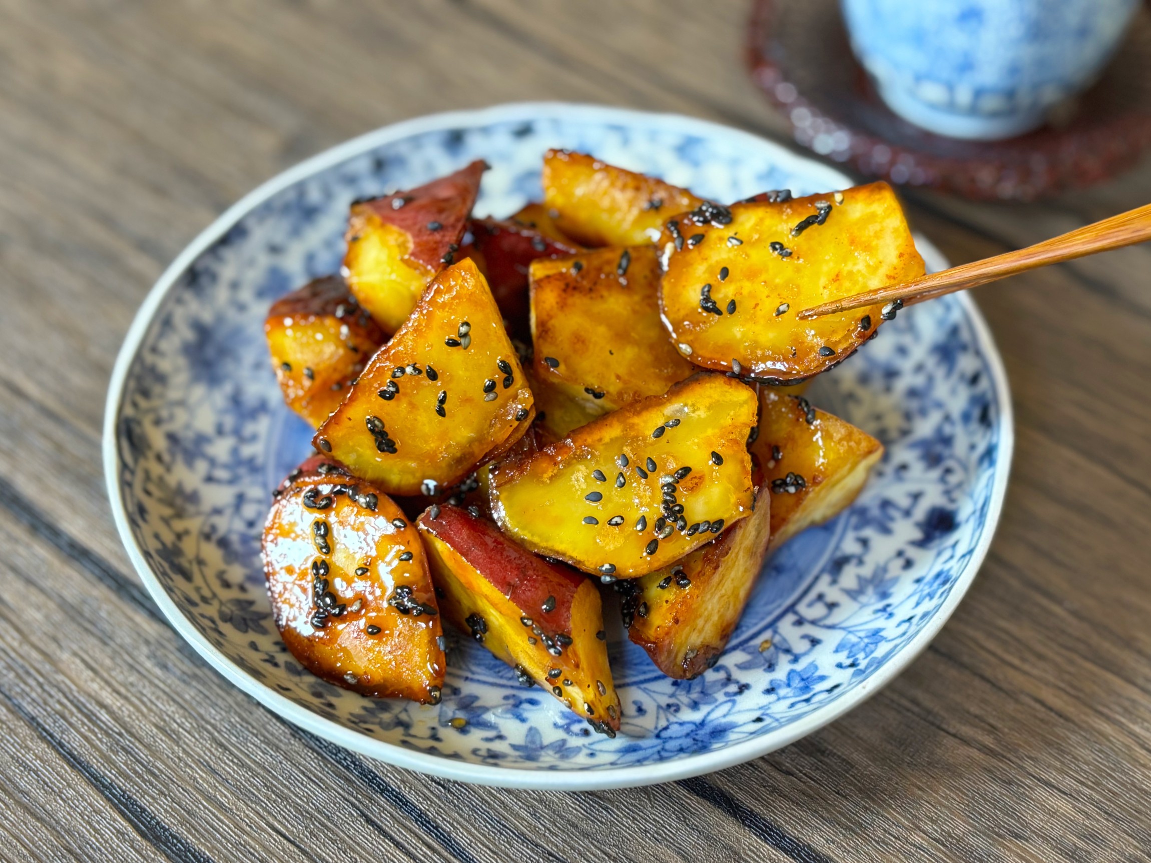 少ない油で「揚げない大学芋」のレシピ。蜜が絡むカリッとほくほく食感