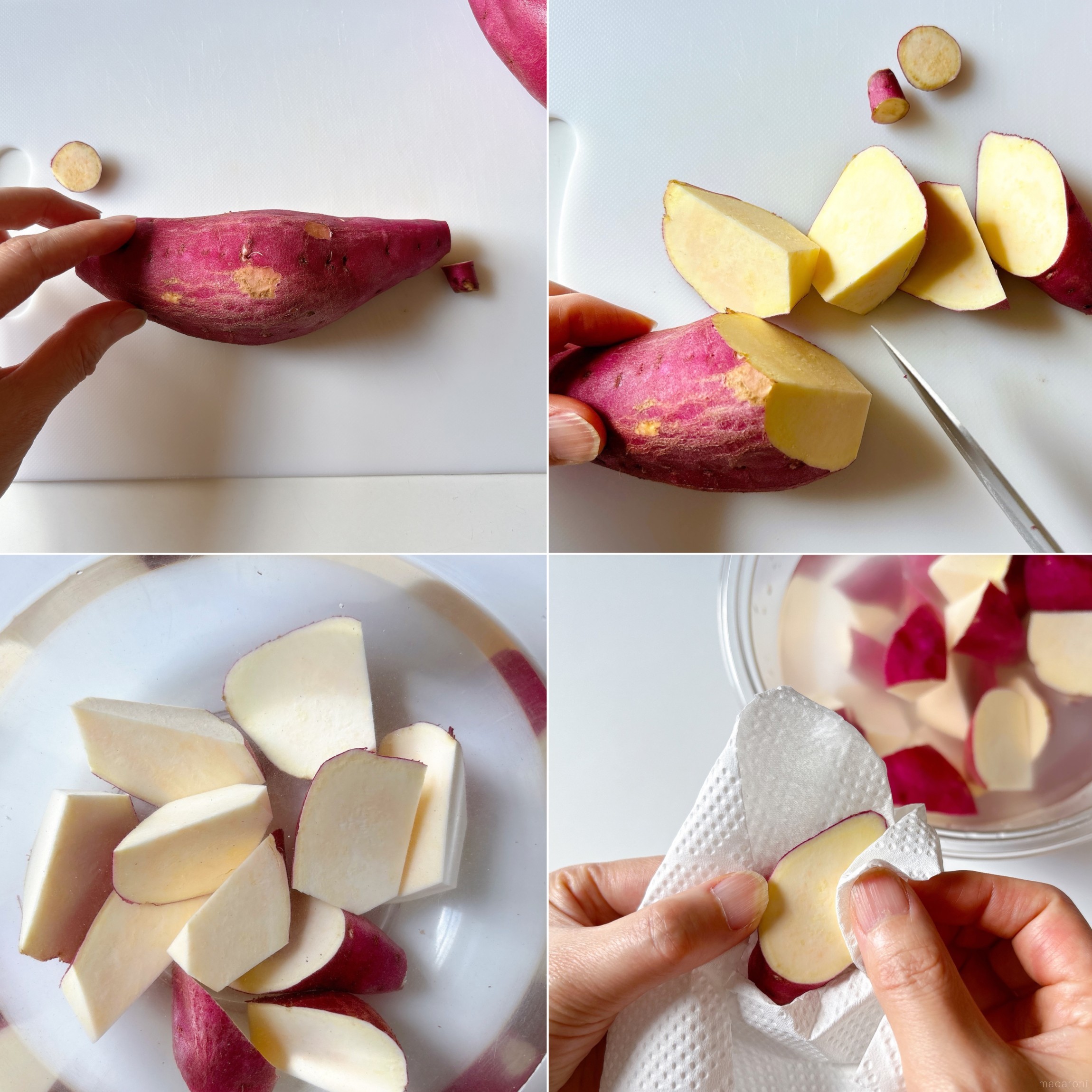 またさつまいもはアクが強く、空気に触れると褐色に変わるため、切ったらすぐに水にさらしましょう。
