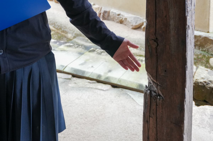 今回は、地元・林田中学校の生徒によるボランティアガイドの案内でその魅力を体験してきました。地域学習の一環として、歴史を学び、自らの言葉で来訪者に伝える活動を行っています。この日は4人の女子中学生が交代で案内役を務めてくれました。