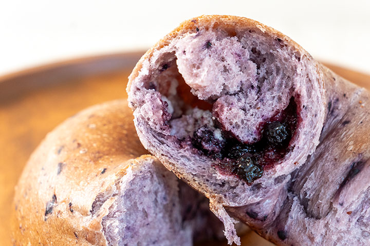 「ブルーベリークリームチーズ」は、ブルーベリーをたっぷり練りこんだ生地にブルーベリーコンポートとクリームチーズを巻き込んでいます。