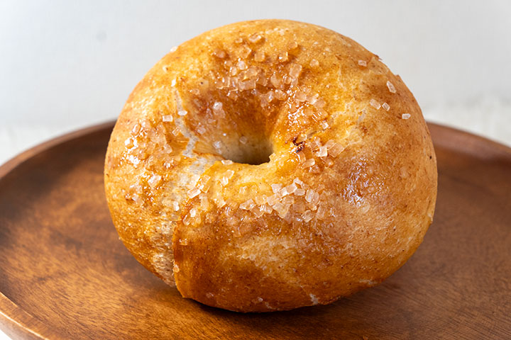 「シュガーバター」は、ベーグルに発酵バターとザラメ砂糖が溶け、香りと食感が一体になっています。