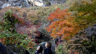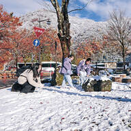 営業部の佐藤優華さんは「中腹からふもとの湯の山温泉街にかけて紅葉が見ごろで、秋と冬の季節が一度に味わえる日になりました。山の上は大変寒いので、暖かい服装でお越しください。今しか味わえない自然の移り変わりをお楽しみいただけると思います」と話している。(記事中の写真は御在所ロープウエイ提供)