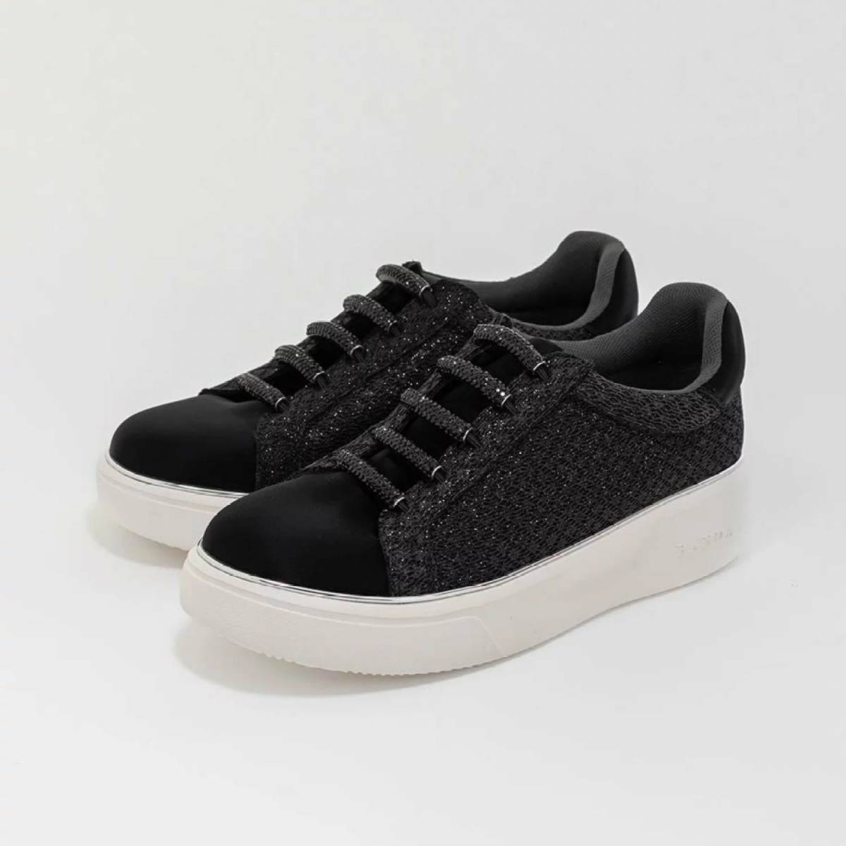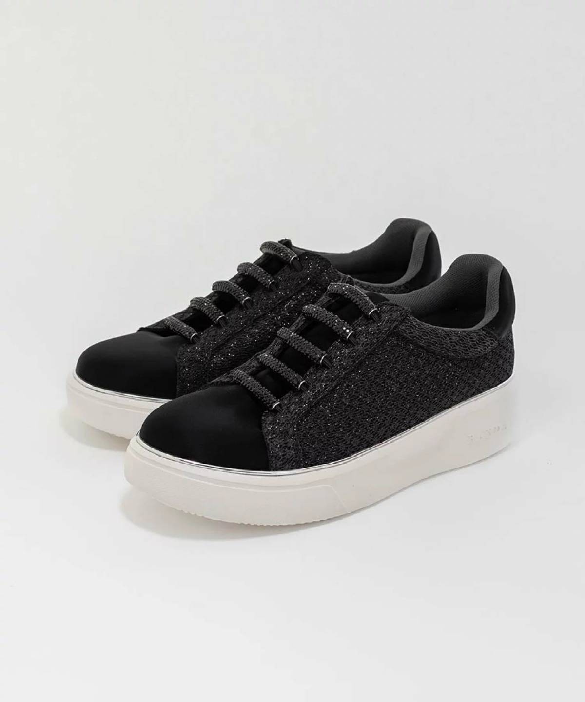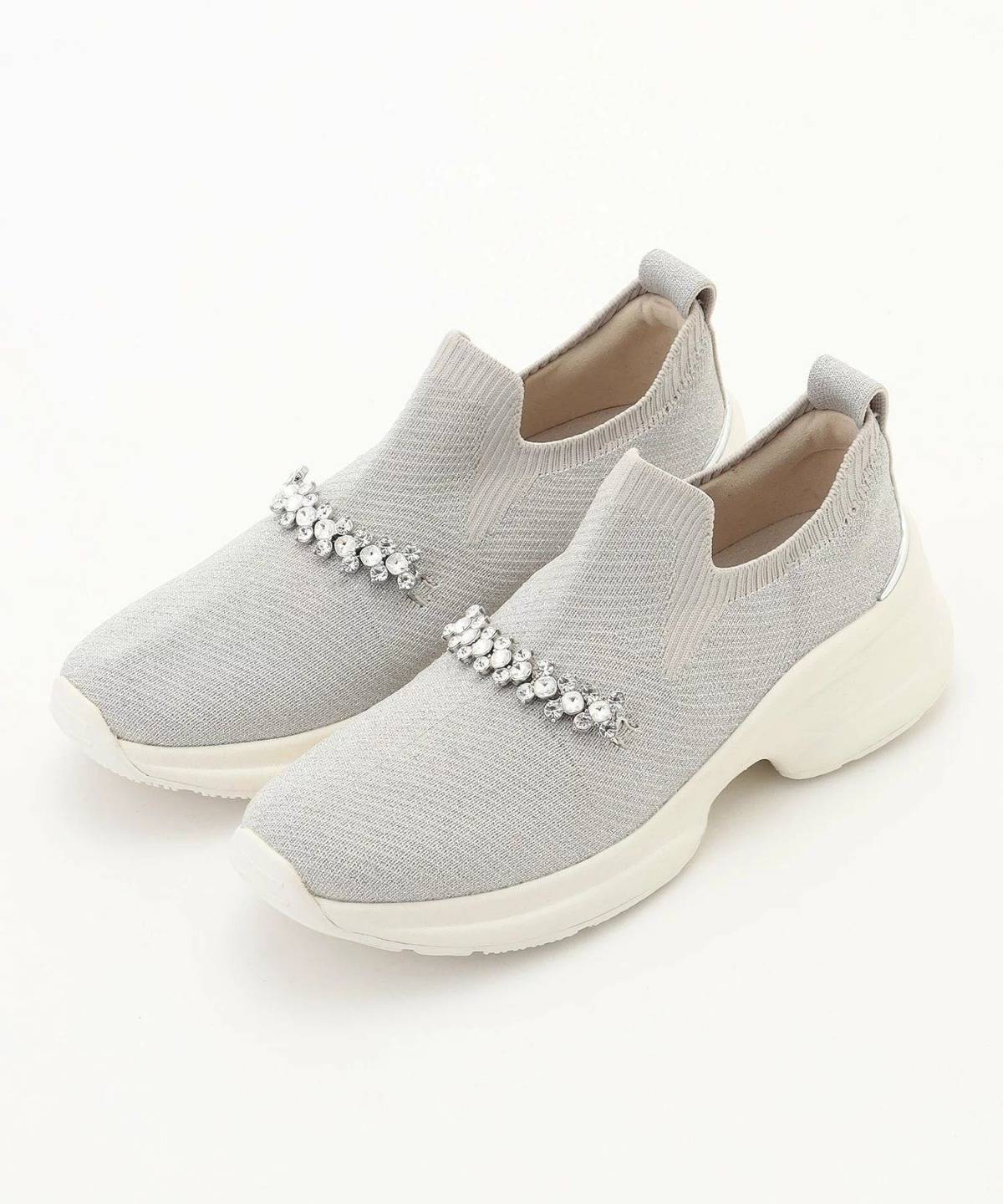 きらめくビジューパーツとグリッターがポイントの華やか&大人可愛い雰囲気のスニーカー。