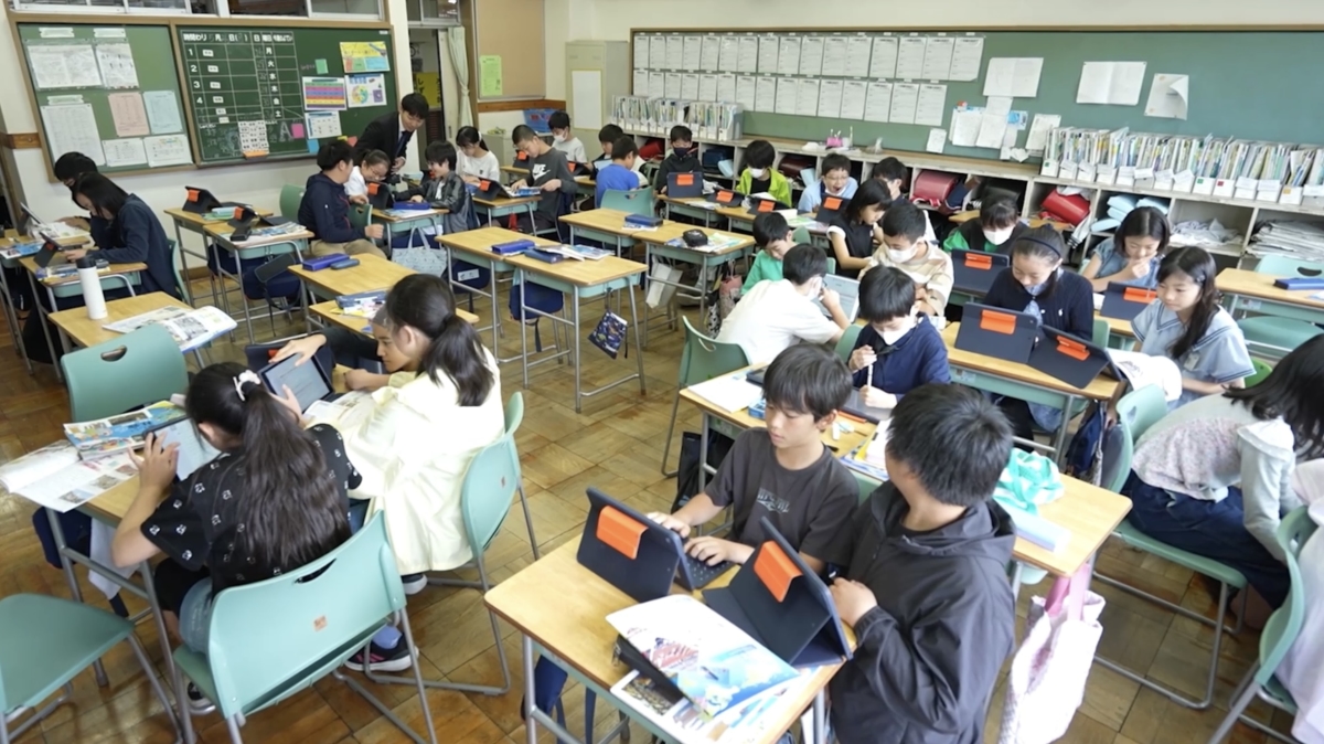 清家区長:先生は“教える人”というより、子どもたちをサポートする“ファシリテーター”のような存在ですね。先生が一人ひとりの生徒のサポートをしながら、学びを深めていくことができます。先生があらかじめ、クラウド上で子どもたちの学びを共有できる仕組みをつくり、子どもたちの学習状況を把握しながら適切に支援しています。子どもたちも、友だちが何をどのくらい調べているのかを見ることができるので、「あの子は私と違う考えだな。ちょっと聞いてみよう」と、そこから新しい学びが生まれる。子どもたちにとっても、いい刺激になっているとわけです。