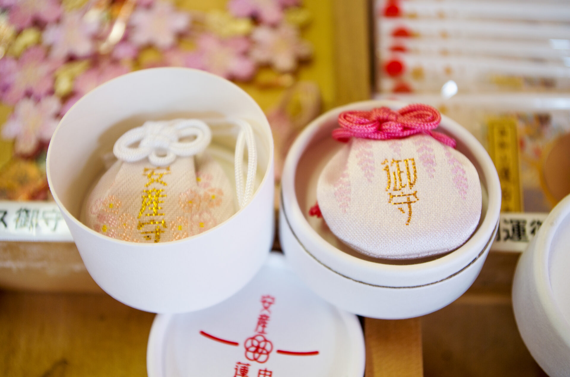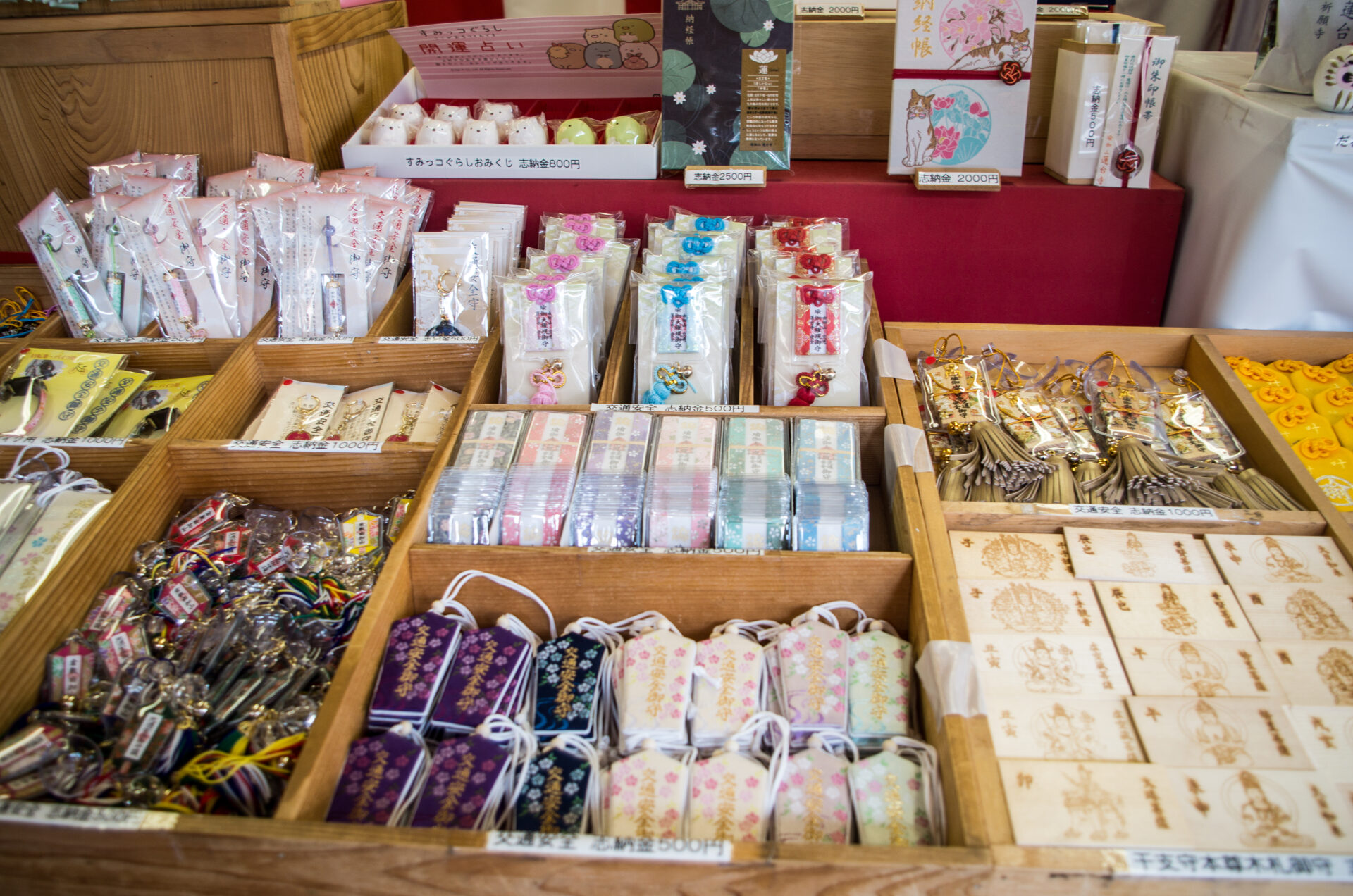 お守り授与所では、さまざまなお守りの取り扱いも充実しています。