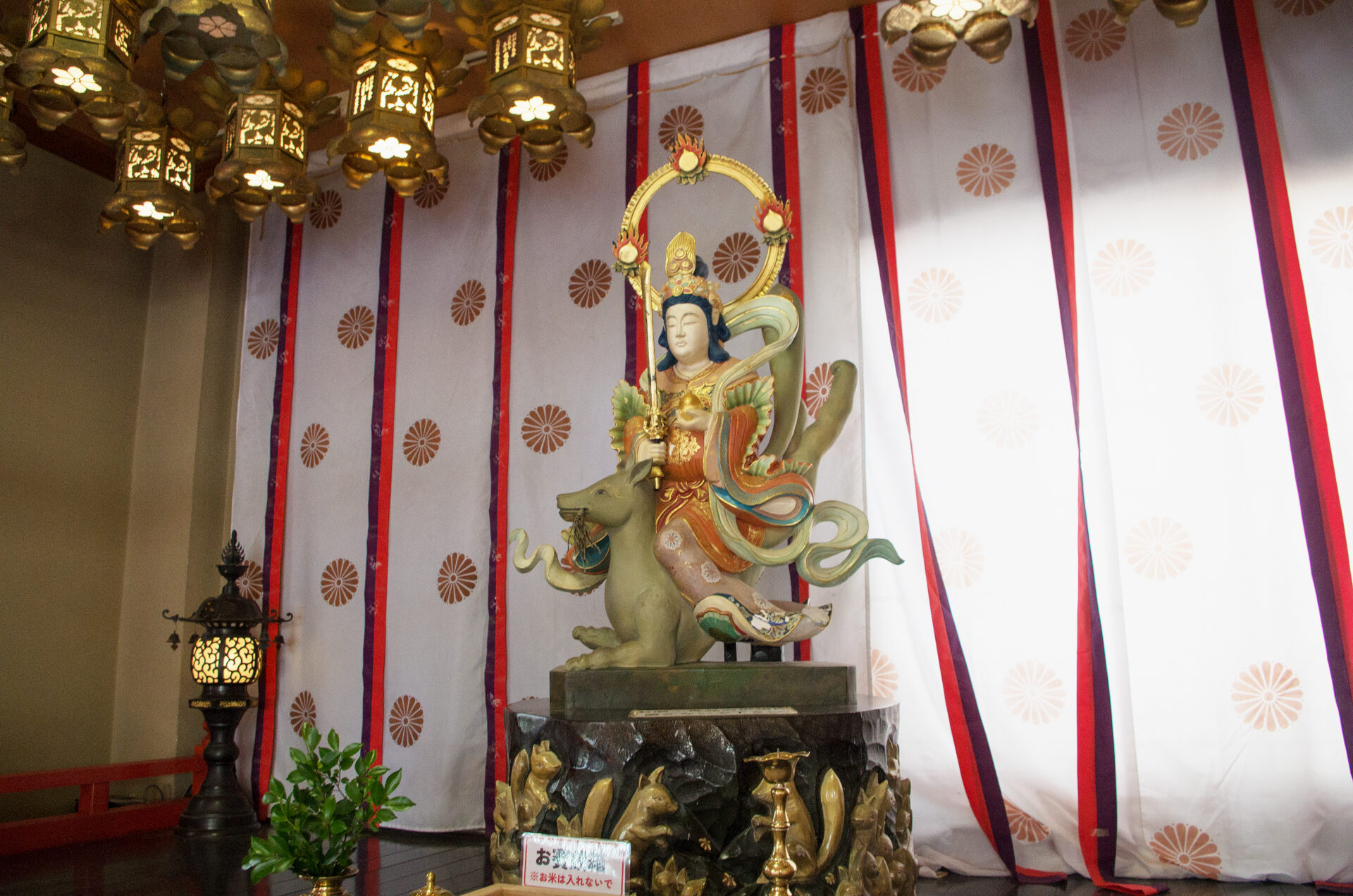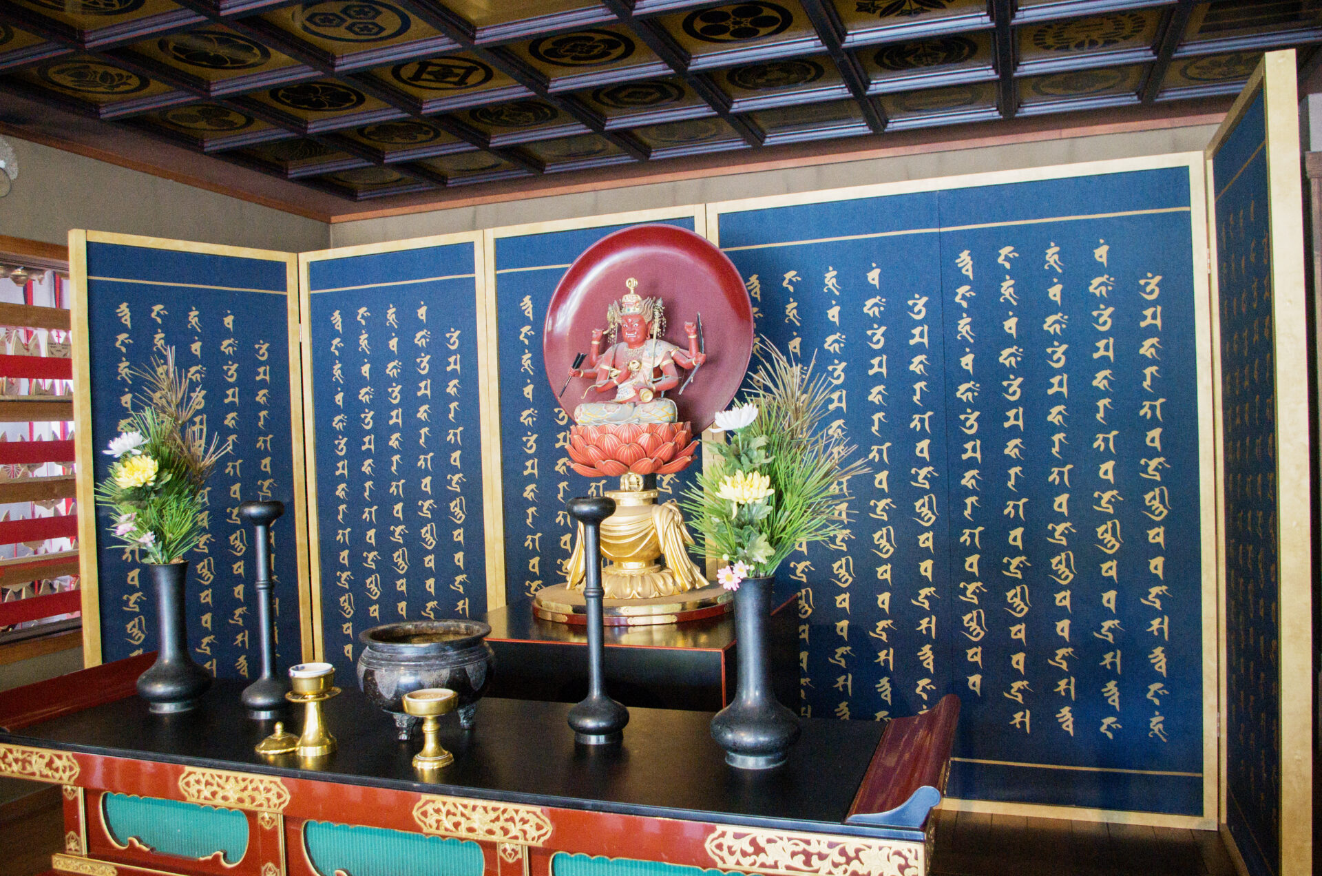 奥には蓮台寺の受付があり、左手には厄除不動明王、愛染明王、ダキニ天が祀られています。広々とした開放的な空間で、穏やかな気持ちでお参りできます。