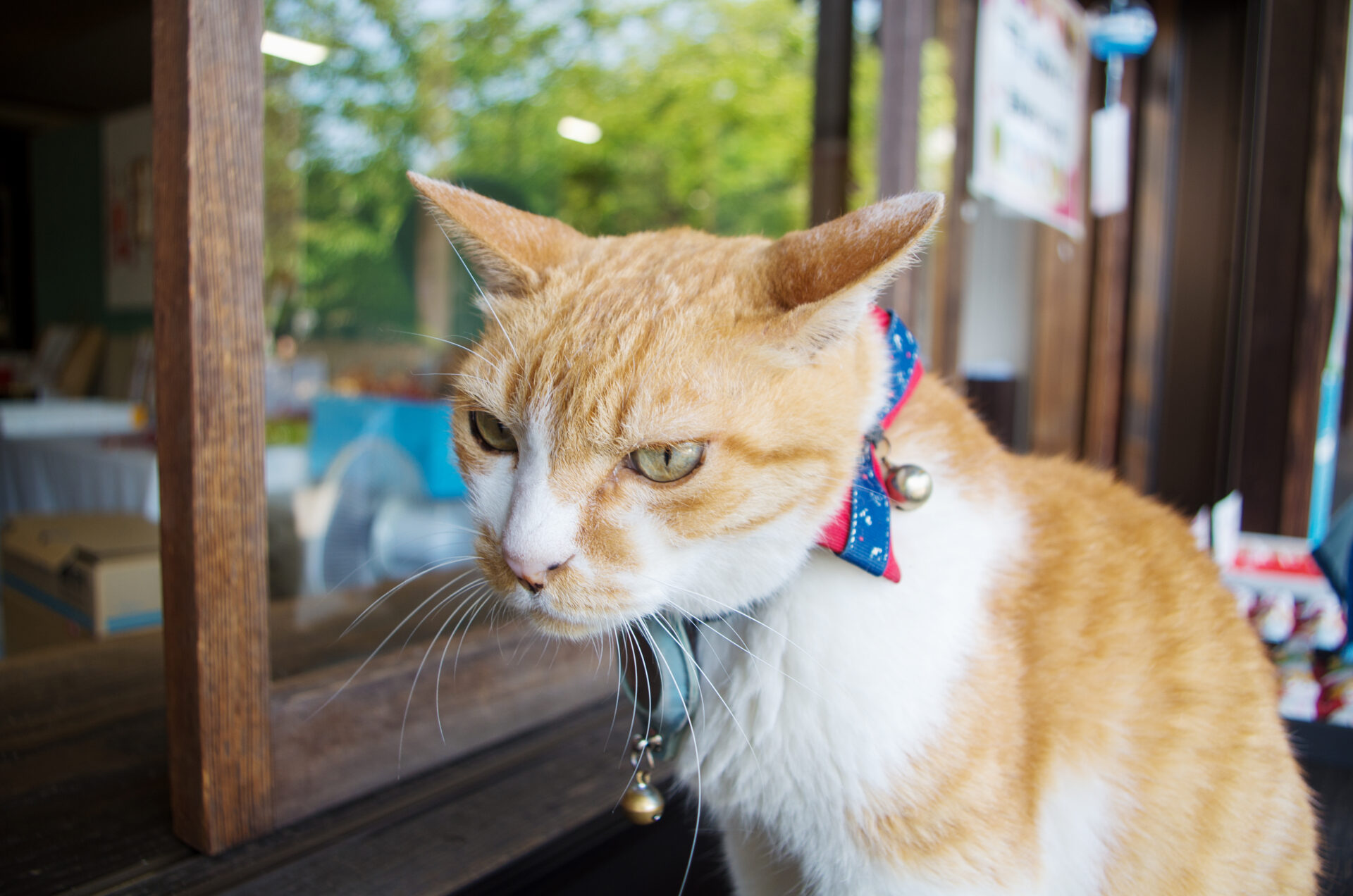 寺の境内には何匹かの猫が出入りしているそうですが、寺猫ふーちゃんだけは特別に、寺務所への出入りも許されているそうです。