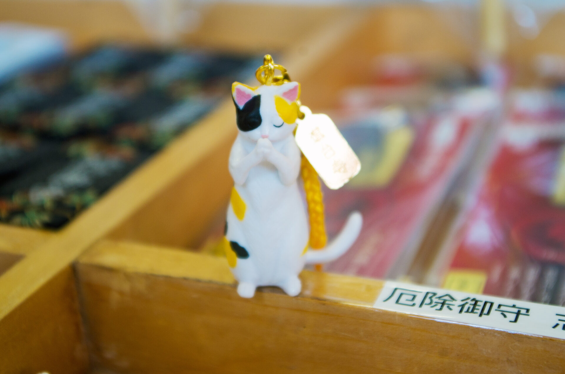 また、こちらのお守りは、開運拝み猫。注意点としては、ふーちゃんではないとのことですが、二足立ちで開運を熱心に拝む猫の仕草が愛らしいですね。