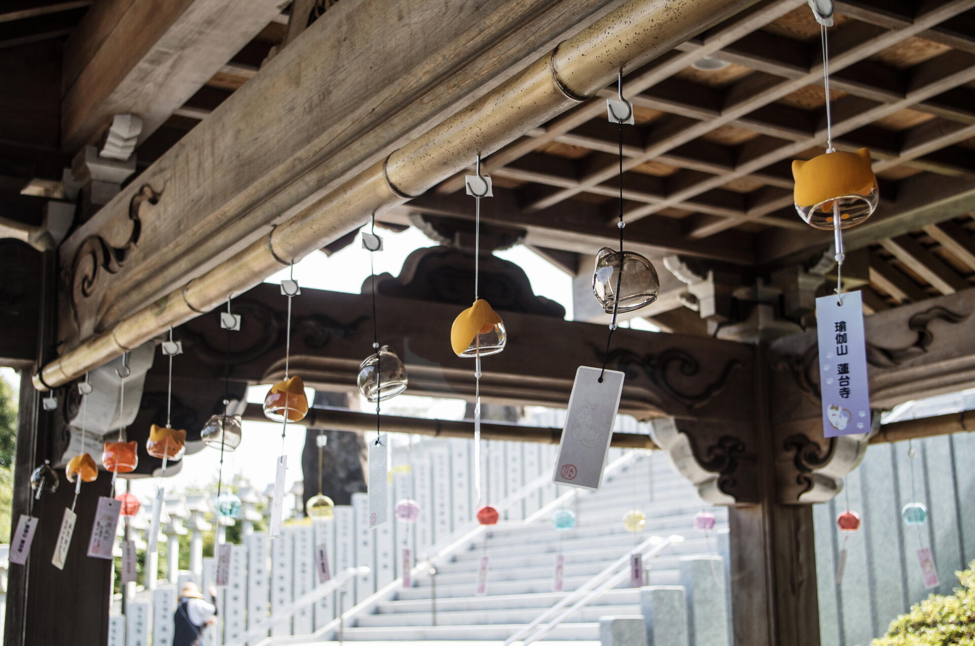 筆者が蓮台寺を訪れた7月上旬には、風鈴まつり(6月1日から9月頃まで)が開催されており、総本殿手水舎の軒先には色鮮やかな風鈴や猫の風鈴が、涼しげで澄んだ音色を響かせていました。