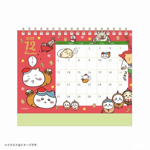 2026年1月から使える卓上カレンダー。1月から12月まで、毎月ちいかわたちのイラストが楽しめます。
