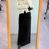 インナーに白ブラウスを重ね着してモノトーンコーデに仕上げれば、メリハリが出てバランスよく見えること間違いなし!