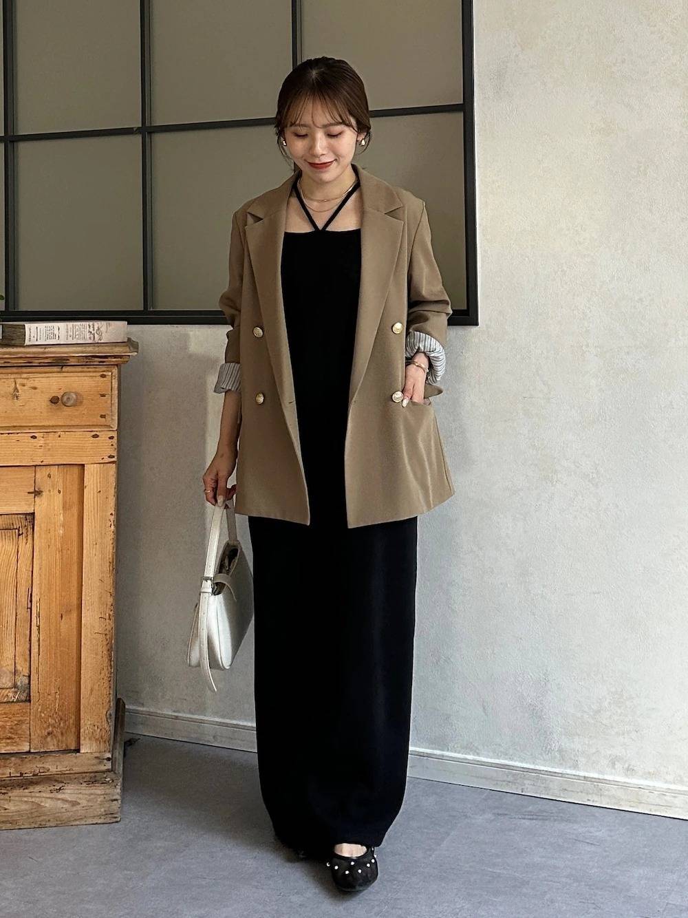 【初秋編】センスいい黒ワンピースコーデ③ホルターネックワンピース×ジャケット